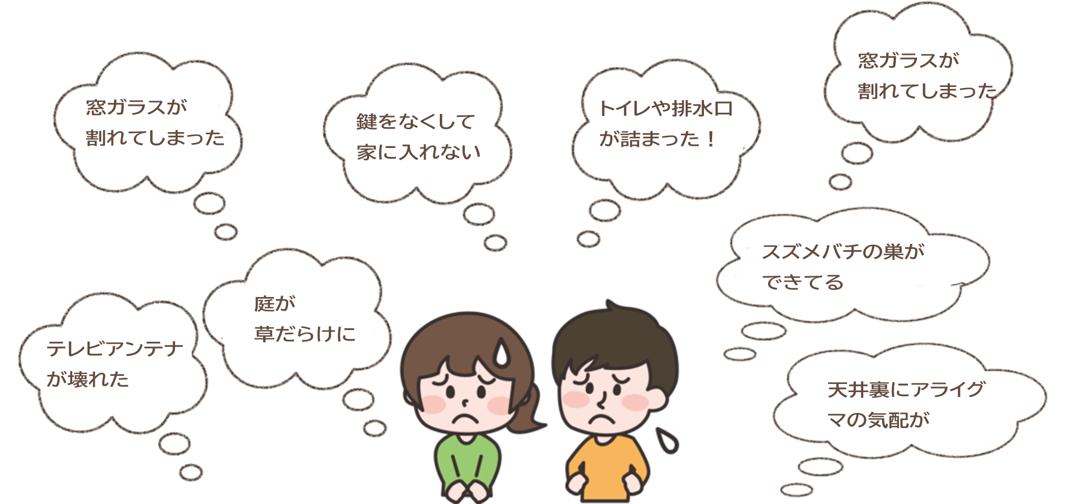 基本的には「暮らしの困りごと」全般に対応可能です。 ガラス・鍵・水回り・草刈り・クリーニング・害虫駆除・遺品整理など、まずはお気軽にご相談ください。